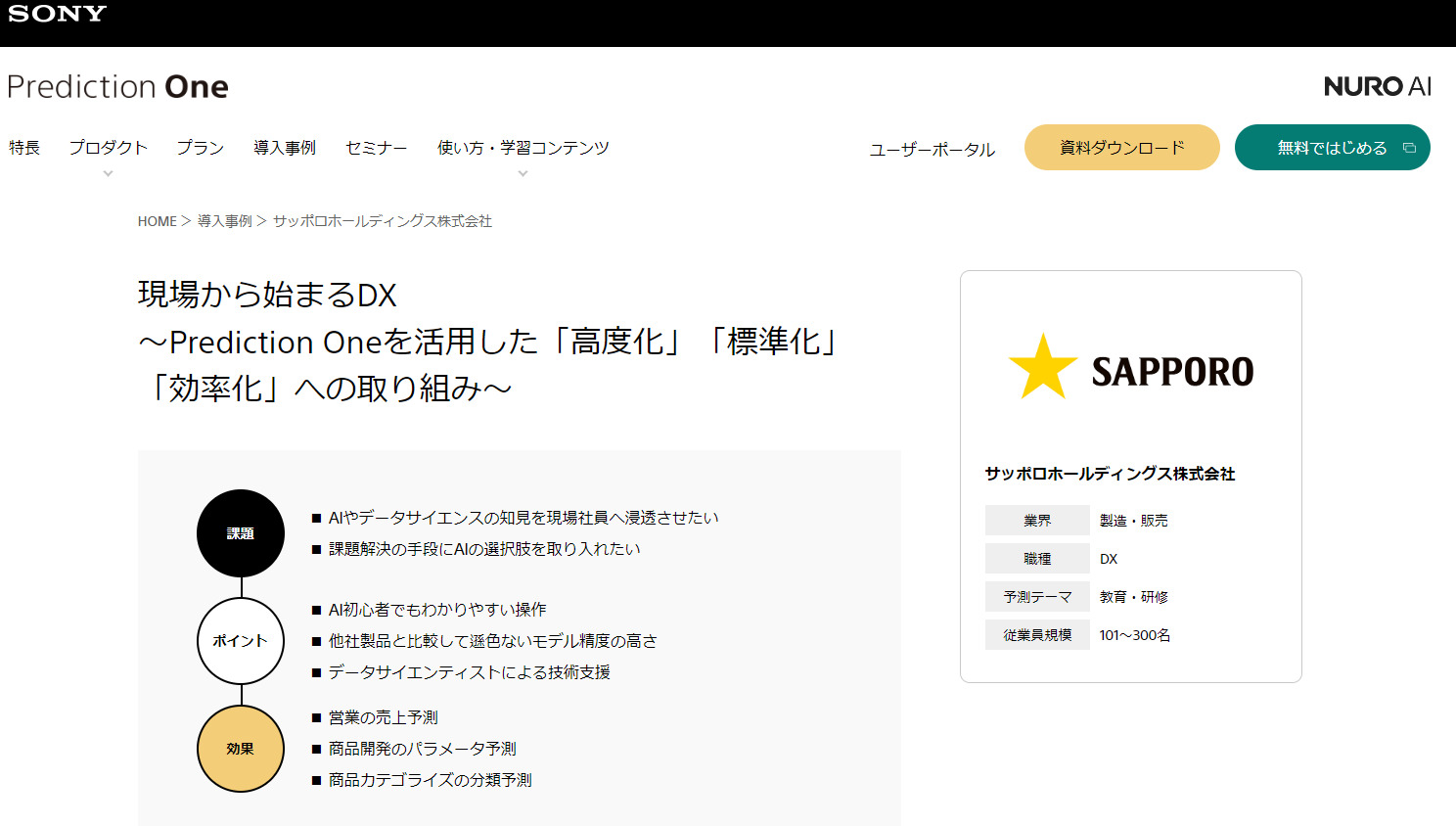 サッポロビール株式会社では、全社員が課題解決にAIを活用する文化を根付かせるために、ソニーのPrediction Oneを導入しました。