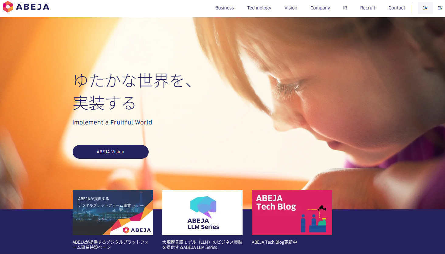 | 主なサービス | デジタルプラットフォーム事業 AI倫理コンサルテーション DX人材育成 DX推進「ABEJA Platform」開発 「ABEJA LLM Series」によるビジネス実装サービス |
