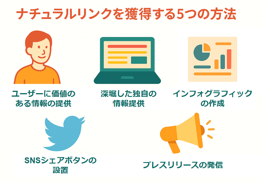 続いては、具体的にナチュラルリンクを獲得する5つの施策についてご紹介します。