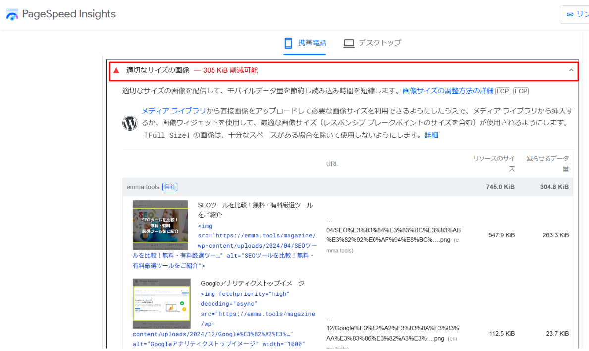 >圧縮後の画像がページ内で最適に表示されることを確認するためには、『PageSpeed Insights』などのツールを使用して、画像がボトルネックになっていないかをチェックすることをおすすめします。