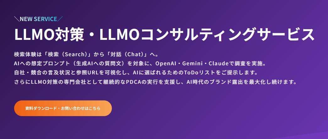 当社では、AI時代の検索市場で勝ち残るためのLLMO専門コンサルティングサービスを提供しています。